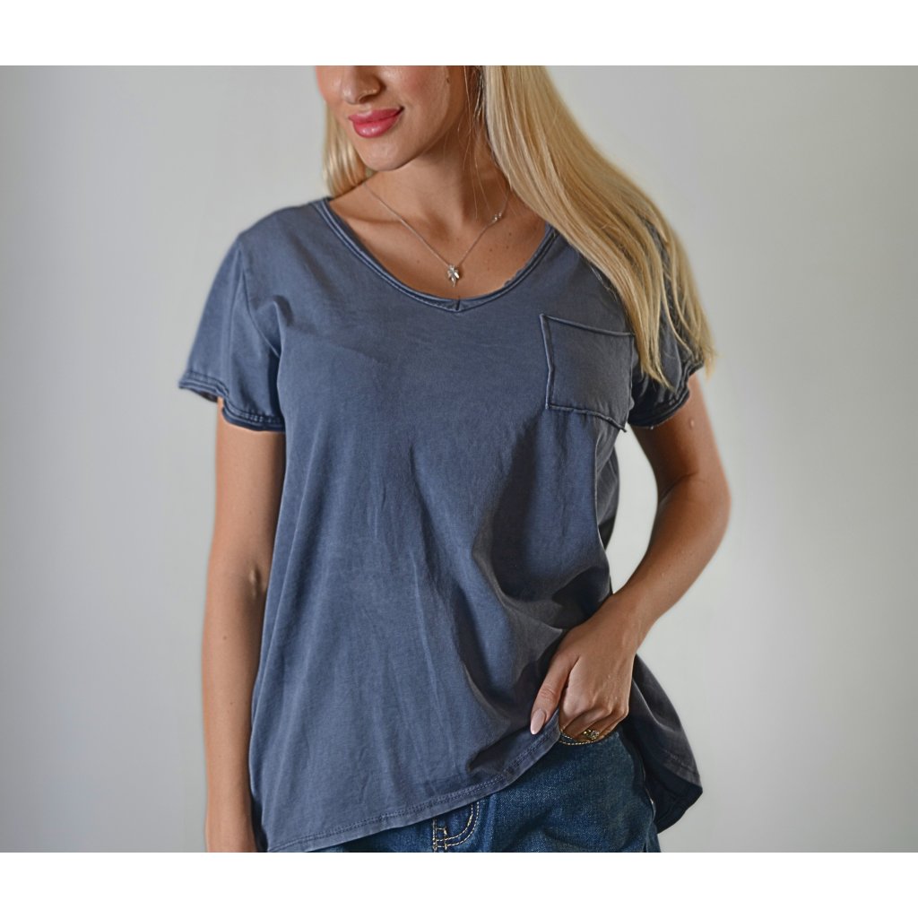 Ležérní a pohodlné tričko v trendy opraném vzhledu je skvělým základem pro každodenní outfit. Měkký bavlněný materiál zajistí maximální komfort, zatímco volnější střih a zaoblený spodní lem dodávají ležérní eleganci. Výstřih do V jemně prodlužuje siluetu a praktická náprsní kapsa dodává stylový detail. Perfektně se hodí k džínům, kraťasům i sukni – ideální volba pro ženy, které ocení kombinaci pohodlí a stylu.