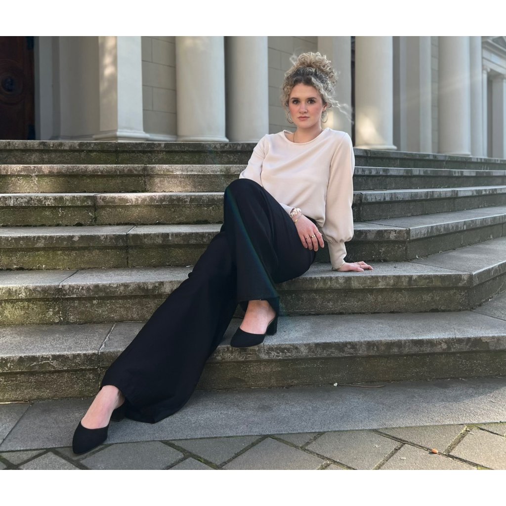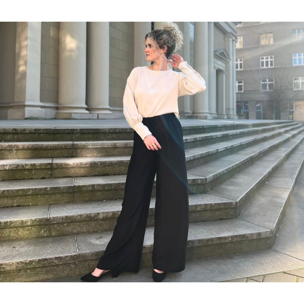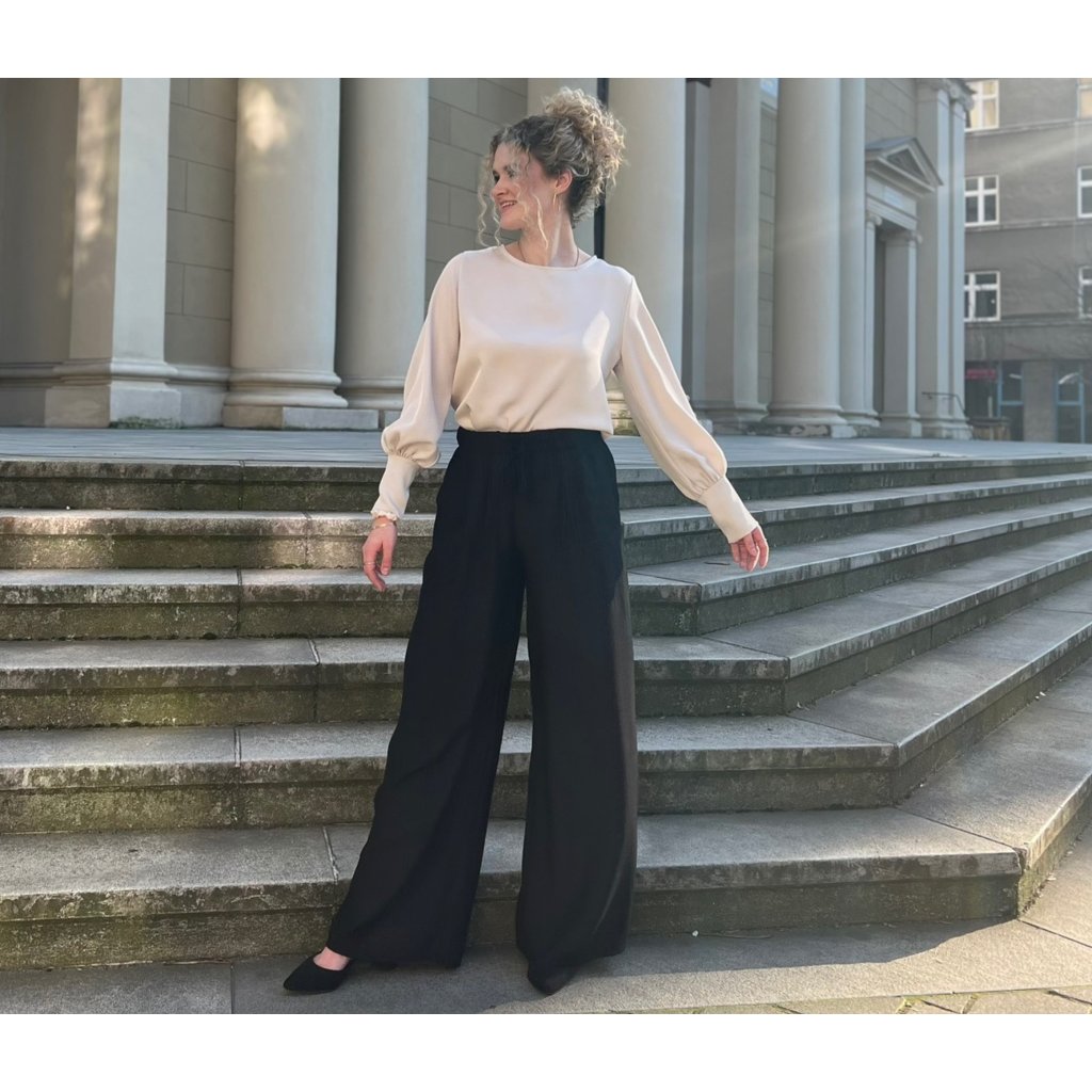 Když se procházíš ulicí, látka se jemně vlní kolem nohou a působí dojmem lehkosti, elegance a sebevědomí. Vysoký pas krásně tvaruje siluetu a dodává ten „wow“ efekt, i když na sobě máš něco tak přirozeného a pohodlného.