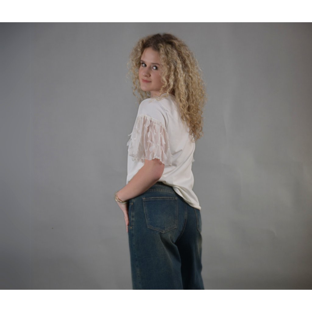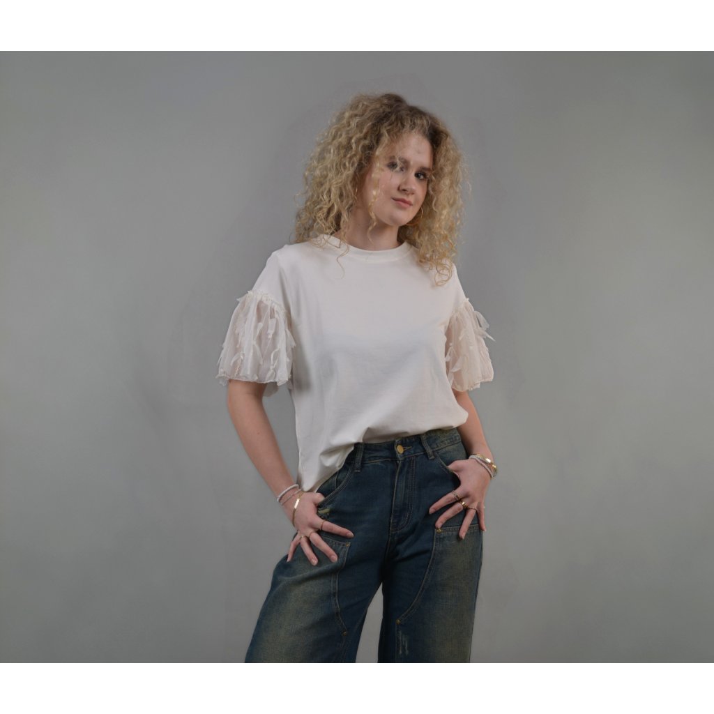 Něžné, éterické, a přesto moderní – právě takové je tričko Braccia Angeliche, které v sobě spojuje jemnost andělských linií s pohodlím každodenního nošení. Dominantou tohoto kousku jsou výjimečné rukávy s peříčkovým efektem, které vytvářejí dojem lehkosti a pohybu s každým tvým krokem.