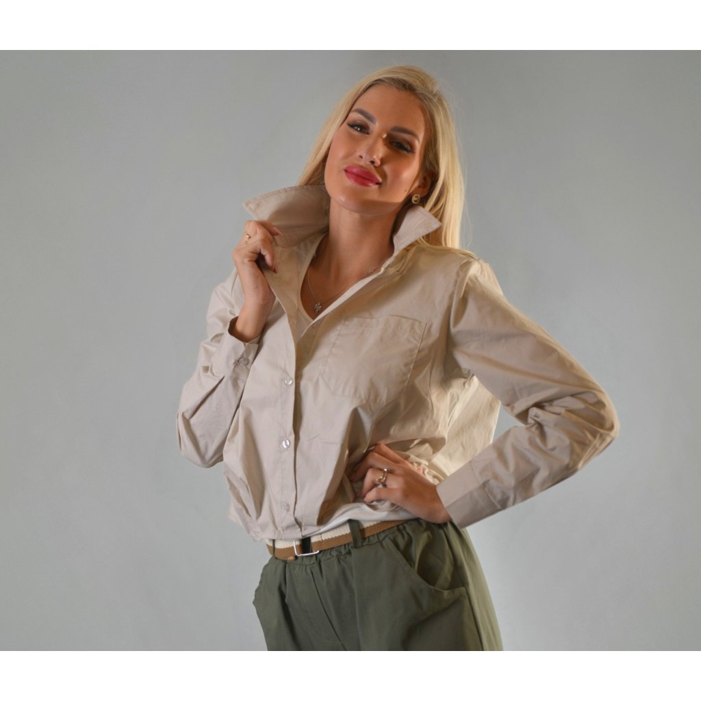 Klasická elegance v moderním provedení – tato béžová košile s ostrým límcem a propracovaným střihem je must-have kouskem každého šatníku. Skvěle padnoucí střih zvýrazní postavu, zatímco kvalitní materiál zajistí maximální pohodlí. Díky univerzální barvě ji snadno zkombinujete s elegantními kalhotami i džínami. Noste ji zastrčenou pro formálnější vzhled nebo ležérně rozepnutou pro uvolněný styl. Perfektní volba pro sebevědomé ženy, které milují nadčasovou módu. Součástí je vnitřní bílé tílko.