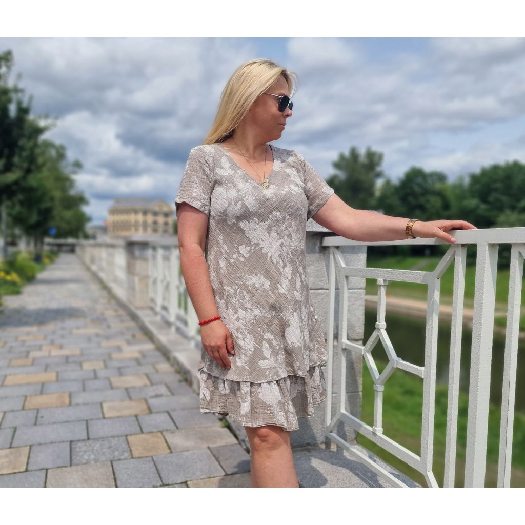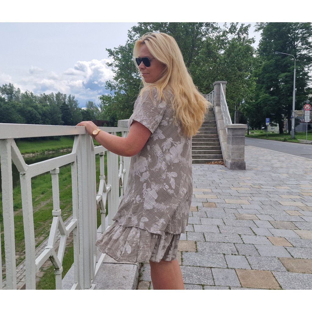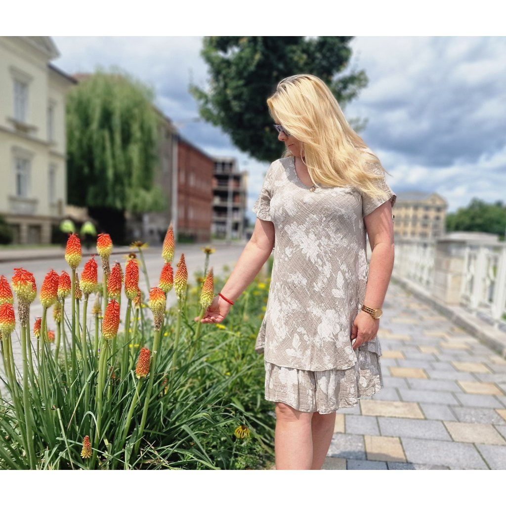 Jemné a přirozené, ale zároveň ženské a stylové. Tyto béžové letní šaty s květinovým potiskem vás okouzlí svým pohodlným střihem, lehounkým materiálem a romantickým volánovým zakončením. Jsou ideální volbou na léto – na procházku, dovolenou nebo klidné odpoledne ve městě.