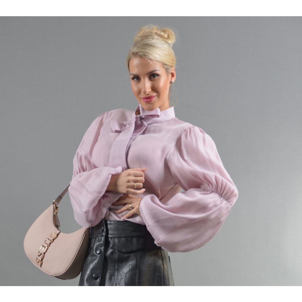 Styl, sofistikovanost a jemná ženskost v jednom! Tato nádherná halenka v jemném lila odstínu je dokonalým doplňkem pro elegantní i trendy outfity. Díky jemně transparentnímu materiálu, romantické mašli u krku a bohatým balónovým rukávům působí luxusně a výjimečně.