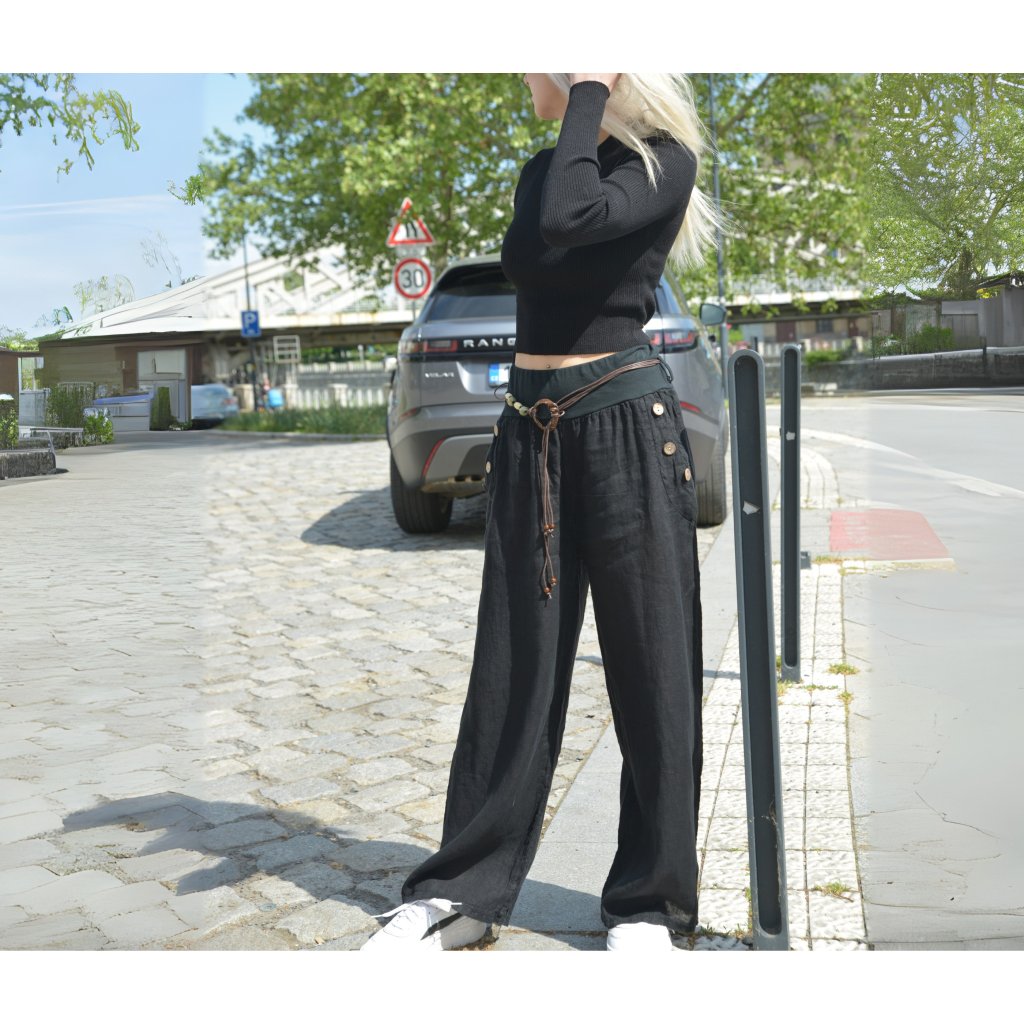 Stylové, pohodlné a s výrazným boho nádechem – to jsou černé lněné kalhoty Nomad Spirit, které si zamilujete pro každodenní nošení. Volný rovný střih zajišťuje volnost pohybu a vzdušnost, zatímco přírodní len vás udrží v pohodlí i během teplých dnů.