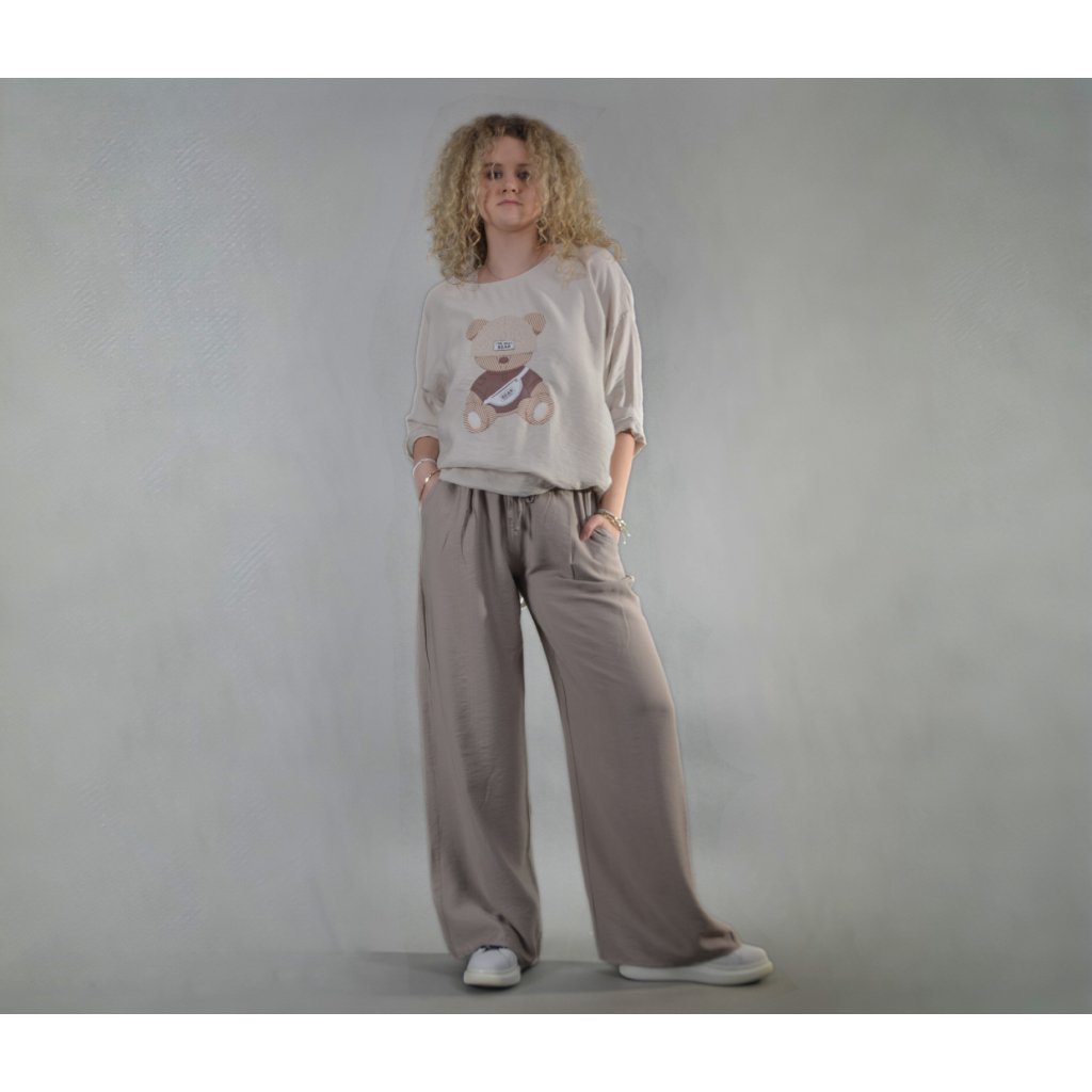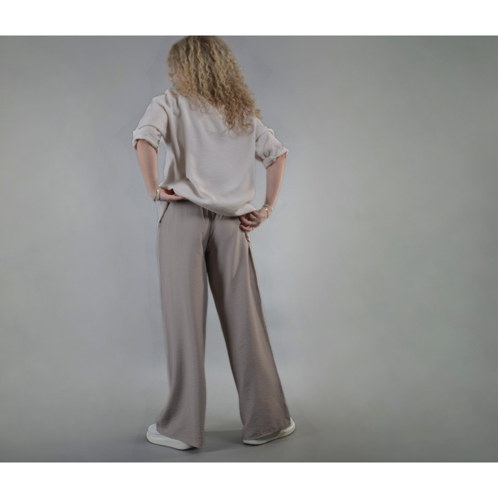 Lusso Relax – Široké kalhoty v taupe odstínu s pohodlným pasem