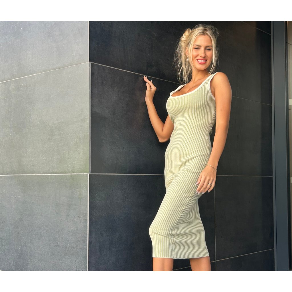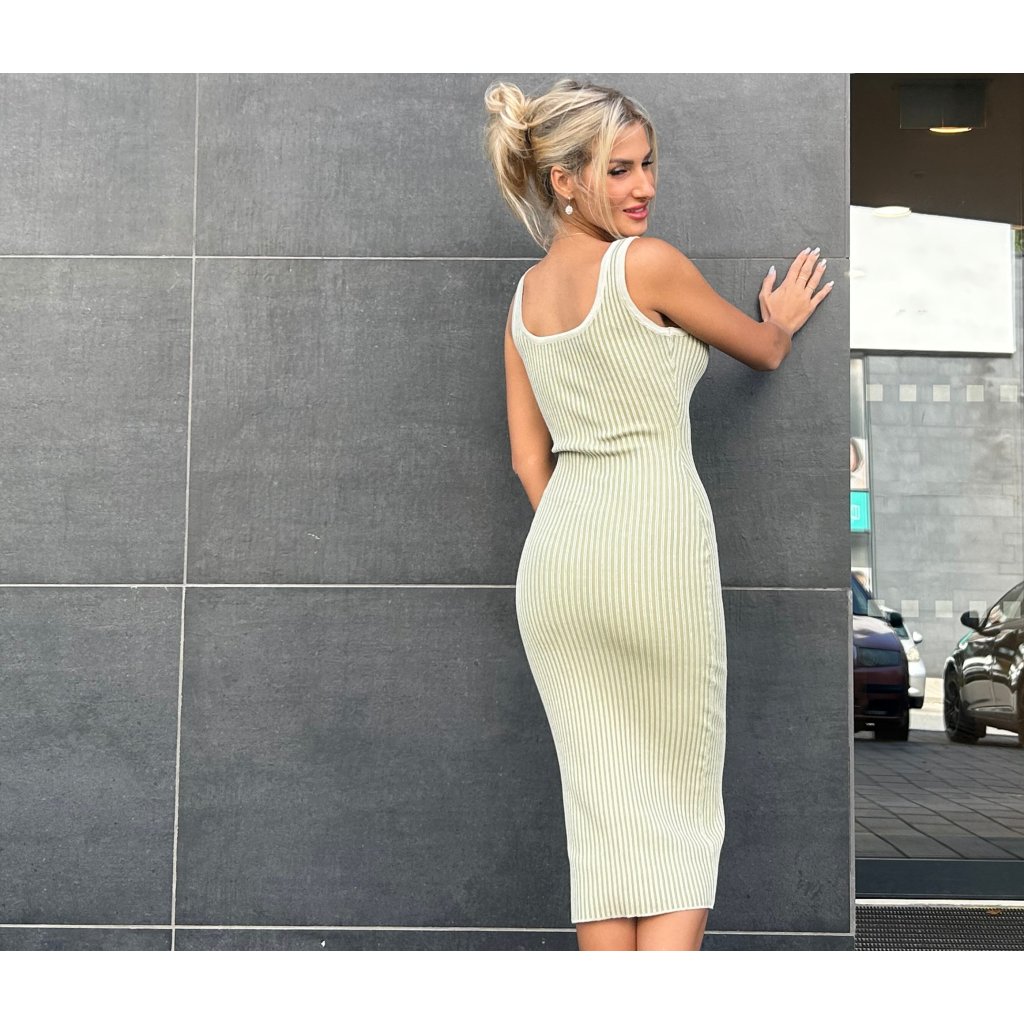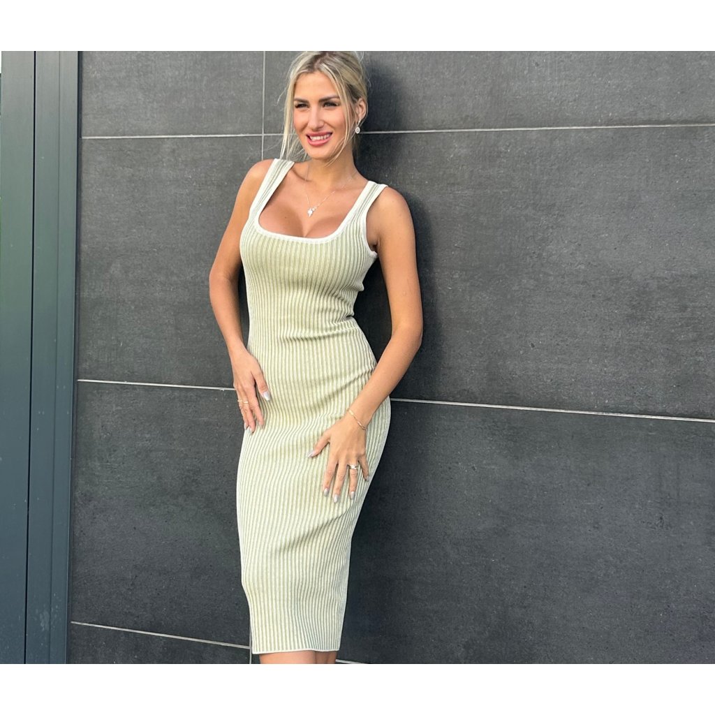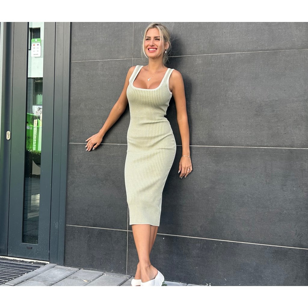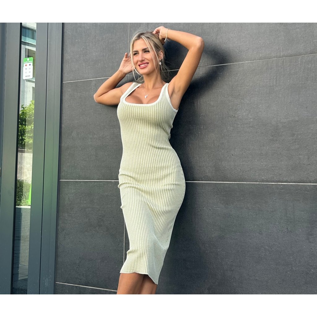 Letní žebrované midi šaty „Olive Charm“ – olivově zelené