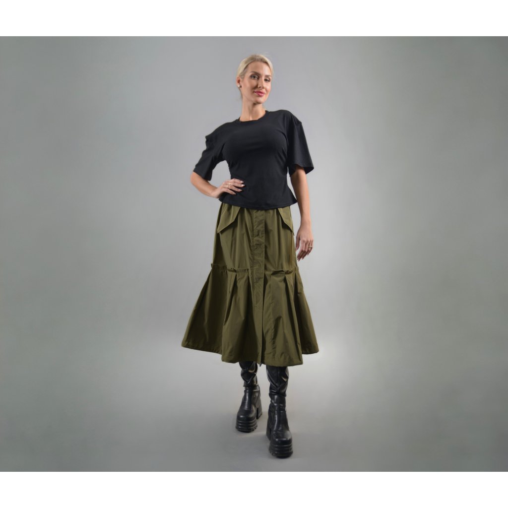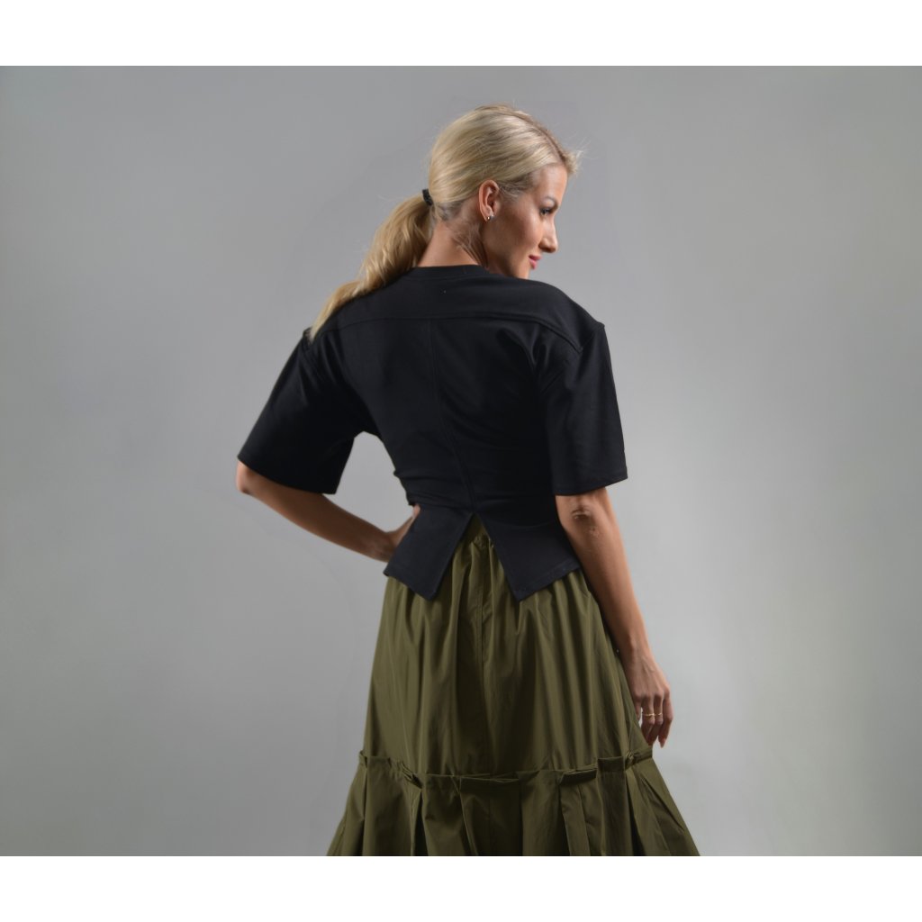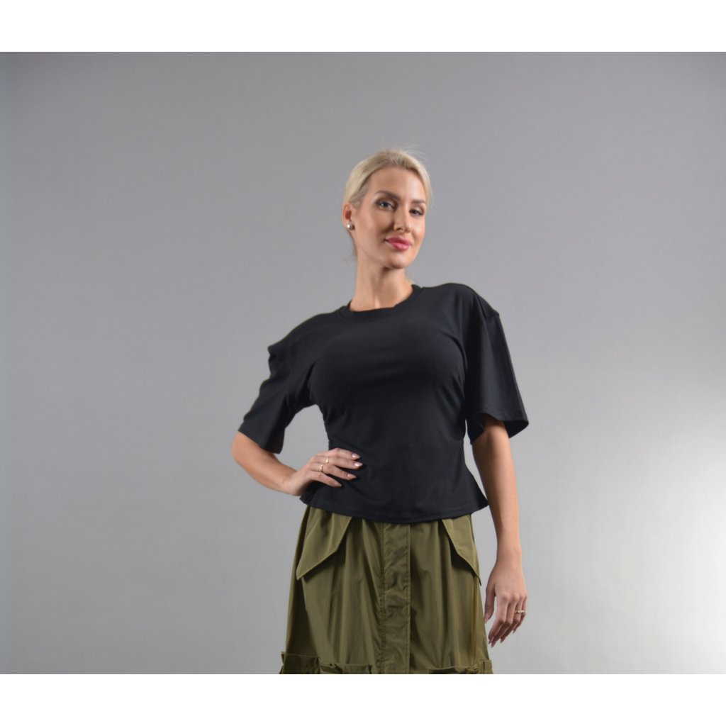 Ombra Donna – tajemná jako půlnoční nebe, jemná jako stín měsíčního světla. Toto tričko ztělesňuje sílu jednoduchosti a eleganci v každém detailu. Volnější střih a mírně rozšířené rukávy vytvářejí nadčasovou siluetu, která lichotí každému typu postavy, aniž by působila stroze.
