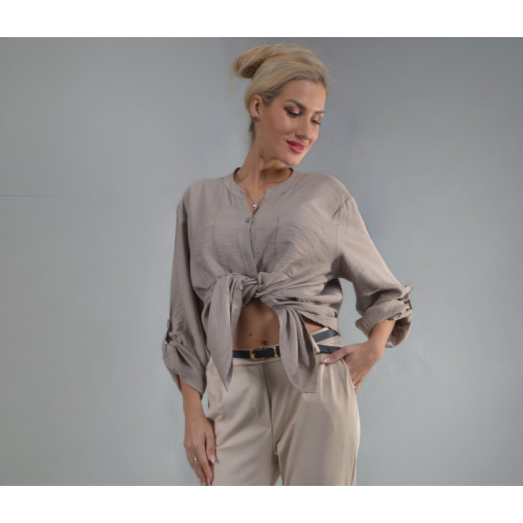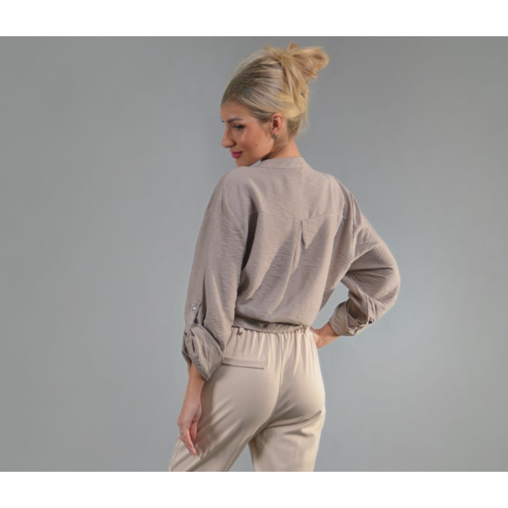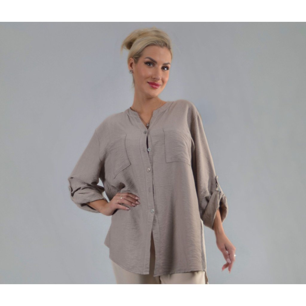 Elegantní béžová košile v minimalistickém stylu je perfektní volbou pro ženy, které preferují nadčasovou módu. Lehký a prodyšný materiál zajišťuje celodenní pohodlí, zatímco volnější střih s prodlouženým zadním dílem dodává košili ležérní eleganci. Dvě praktické kapsy na hrudi a rukávy s možností ohrnutí podtrhují její všestrannost. Skvěle se kombinuje s úzkými i volnými kalhotami a díky neutrální barvě se hodí pro jakoukoli příležitost – od běžného nošení až po elegantnější outfit.